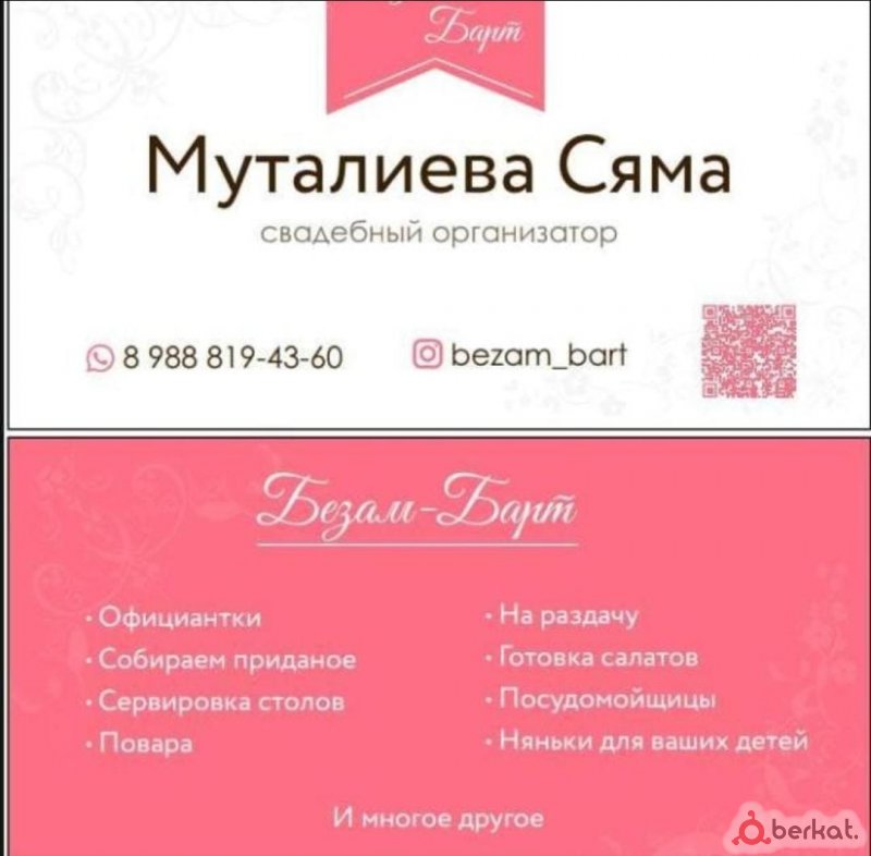 выездные официанты на дом,мы предлагаем вам ресторанные обслуживание официанты на дом.вы можете любое время бронировать официантов. ваша свадьба пройдёт на вышем уровне,мы вам это гарантируем ? профессиональные обслуживание от сямы муталиева пишите на счет заказа вацап или по номеру +7988-819-43-60